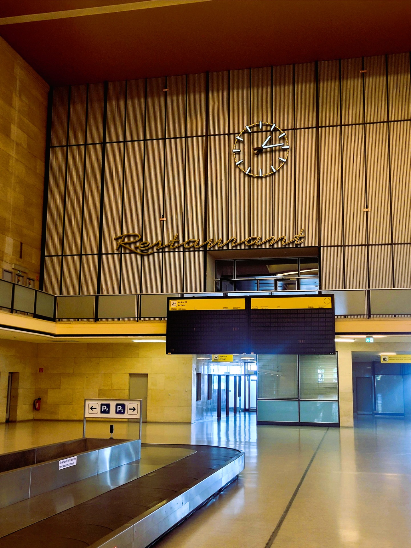 The legendary departure hall, 120 meters long, feels suspended in time. It seems as though a passenger has only just retrieved a suitcase from the baggage carousel; as if the last guests have merely stepped out of the restaurant, laughing, leaving behind the murmur of voices and the clink of glasses.